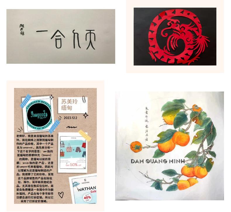 闭营仪式现场播放了学生作业视频集锦,展示了学员们的剪纸、中国画、书法、营销策划等课程的优秀作业。