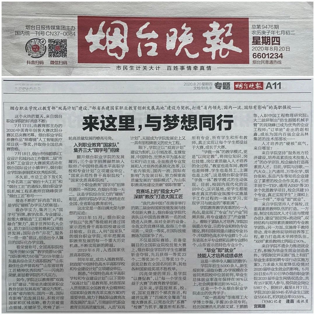 8月20日,烟台晚报以《来这里,与梦想同行》为题对新葡的京集团8814进行报道。