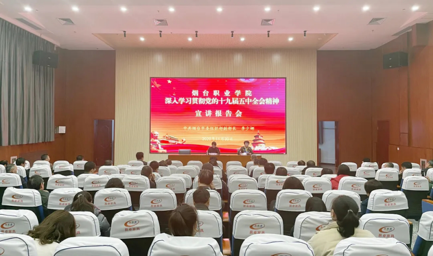 报告会上,李少娜从“十九届五中全会的基本情况、重大意义、主要精神”“关于加强党的领导提供坚强保障”“关于立足烟台实际做好落实文章”等方面,对全会精神进行了系统宣讲和阐释。报告内容全面系统、准确翔实、生动深刻,既有战略高度、思想深度和理论厚度的宏观架构,也有结合职业教育发展的微观分析,对学校深入学习贯彻落实党的十九届五中全会精神起到了重要的指导作用。