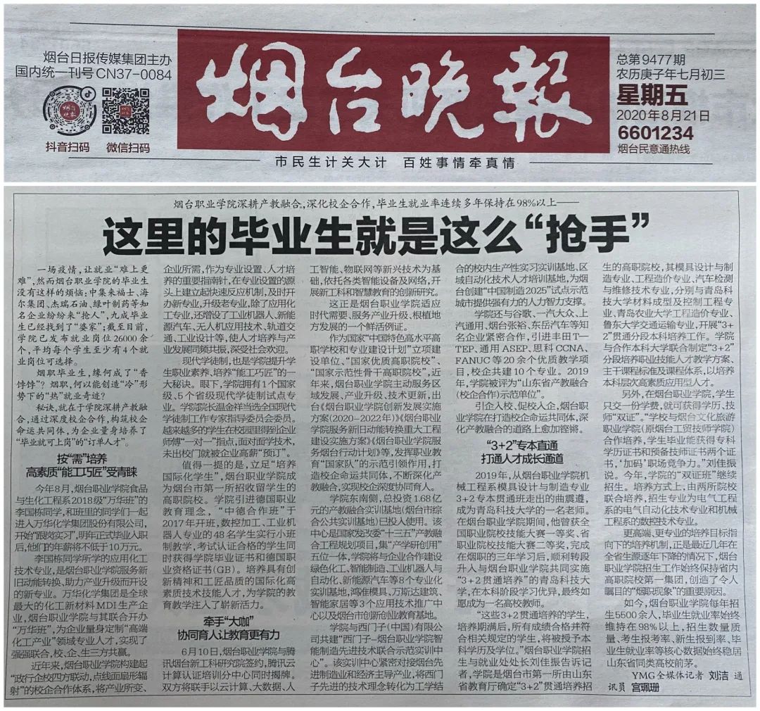 8月21日,烟台晚报以《这里的毕业生就是这么“抢手”》为题对新葡的京集团8814进行报道。
